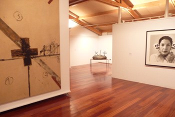 Una fotografia de l'exposició, amb una obra d'Antoni Tàpies, a la banda esquerra