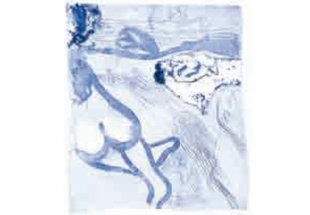 Del treball de Guinovart, Emili Bayón, director del Museu de l'Art de la Pell, en destaca la visió del mar Mediterrani, amb les evocacions del blau, en què lartista recorda tots els paisatges daquest color predominant. Un recorregut a través de llocs com Castelldefels, el Maresme, Cadaqués, i tot travessant els Pirineus fins a les costes francesa, italiana i, fins i tot, el mediterrani grec. També es recrea en altres horitzons, com els blaus de les Illes Balears, o Tunis o lAlgèria. Bayón destaca que totes les obres de lautor destaquen per la seva força visual i per la plasticitat.