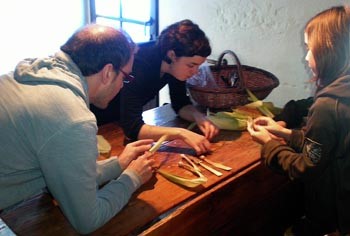 Una imatge d'una de les guies de la Casa Museu, ensenyant a espellofar el blat de moro