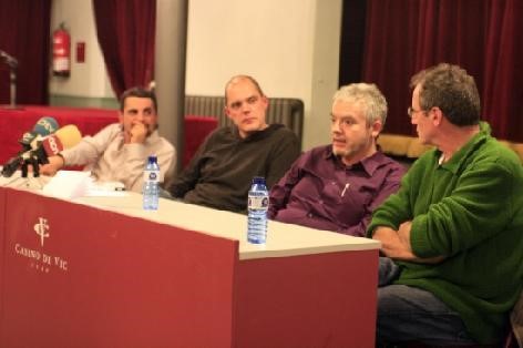 ACN - El llibreter torellonenc Biel Barnils ha presentat aquest dimarts al Casino de Vic davant una cinquantena de persones el seu primer llibre 'L'Orgia Verbal. Converses amb Màrius Serra' (Edicions Dau). A l'acte hi han assistit l'escriptor Màrius Serra i el cantautor Quimi Portet.
