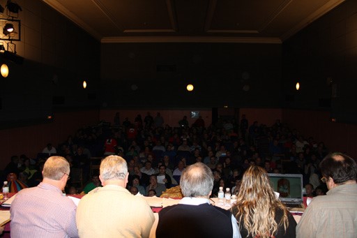 Una imatge del Teatre Casal de Gràcia ple de gom a gom. Foto: Colla Gegantera i Grallera de Manlleu