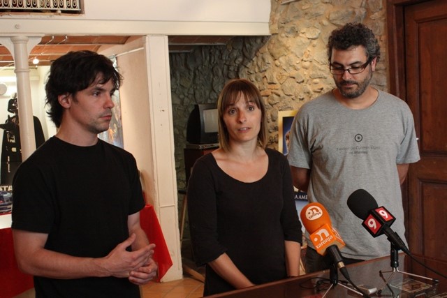 Mònica Herrera i Sergi Prat, membres de l'organització, en companyia del regidor de Cultura, Pep Mas (a l'esquerra)