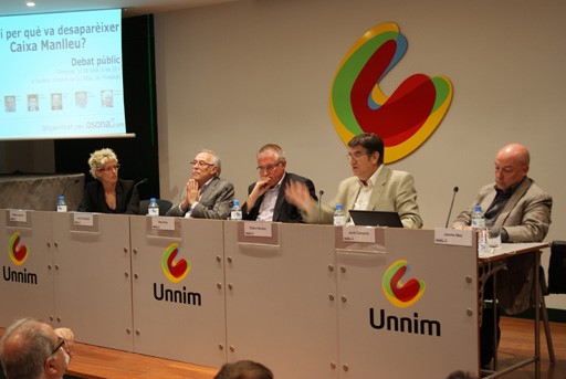 Vic va acollir aquest dimecres un debat sobre la desaparició de Caixa Manlleu. Els participants al debat van coincidir a l'hora de designar el Banc d'Espanya com un dels culpables de la desaparició de Caixa Manlleu i de la inevitable compra d'Unnim per part del BBVA.