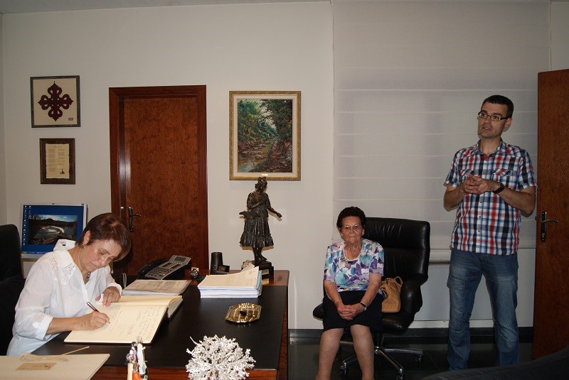 Tres generacions de la Cistelleria Codina, mentre Marta Codina signa el llibre d'honor de l'Ajuntament de Manlleu
