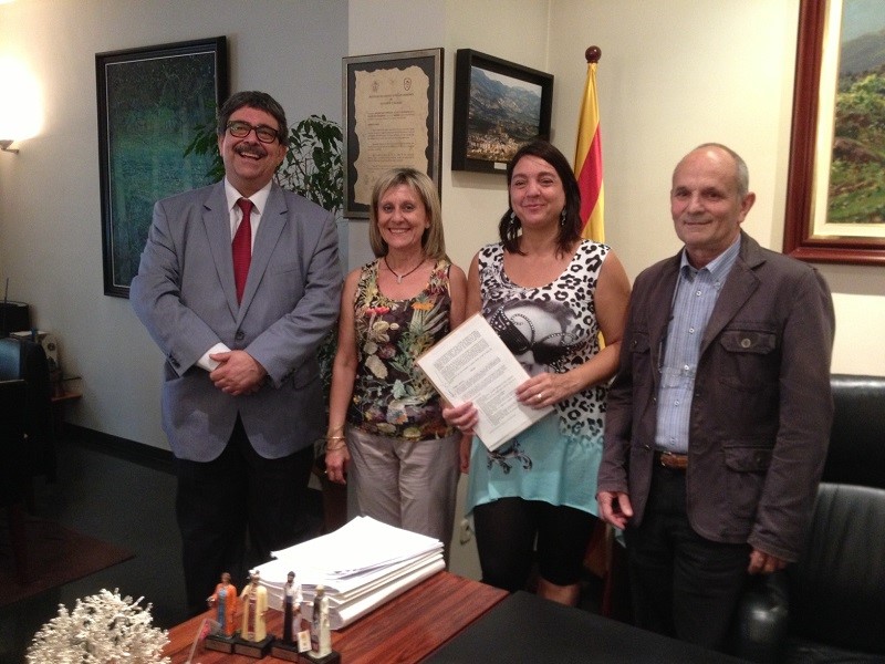 Una imatge de la signatura de l'acord entre Ajuntament de Manlleu, MAB i Generalitat
