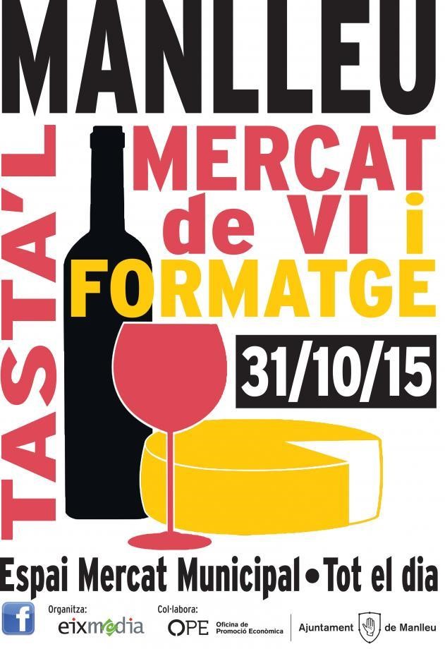Aquest dissabte 31 d'octubre la plaça del Mercat Municipal de Manlleu serà l’escenari d’una nova edició del Mercat de vi i formatge, que aplegarà parades de vins de diferents denominacions d’origen catalanes a més de cervesa artesana i ratafia, i una mostra dels millors formatges d’elaboració artesana.