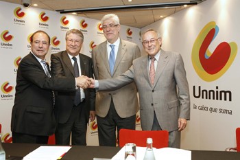 Aquest dimarts a la tarda s`ha formalitzat lescriptura de creació de la Caixa dEstalvis Unió de Caixes de Manlleu, Sabadell i Terrassa Unnim. Lacte sha celebrat al domicili social de lentitat, ubicat a la Plaça de Catalunya, 9, de Barcelona, amb la presència de la màxima representació de les tres caixes fusionades.