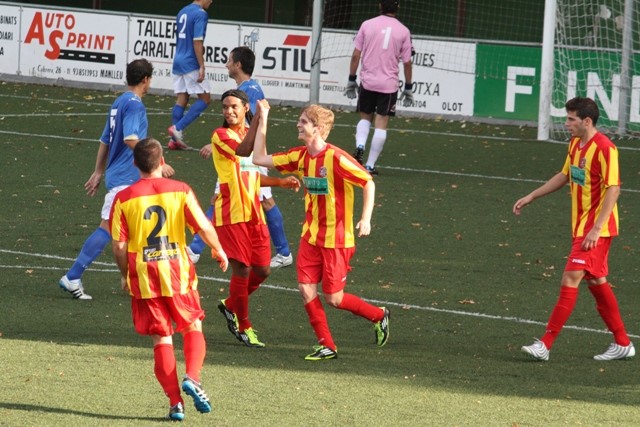 Jordi Aumatell en la celebració del seu gol, el segon del Manlleu. Foto. E. Garcia