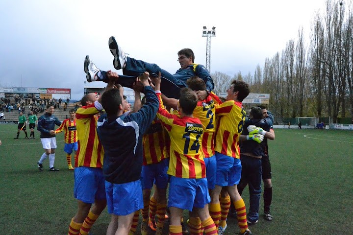 Jordi Florido, mantejat pels seus jugadors la darrera jornada, en salvar la Divisió d'Honor. Foto: E. García