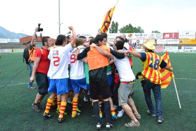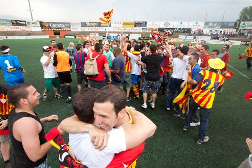 Una imatge de l'alegria que es va desfermar al camp. Foto: David Fajula