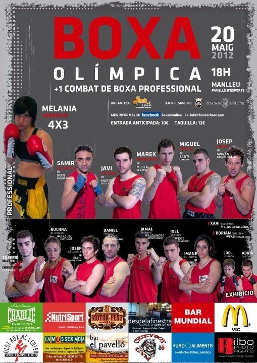 El proper diumenge 20 de maig de 2012 a partir de les 6 de la tarda tindrà lloc al pavelló municipal desports de Manlleu, una vetllada de boxa olímpica i un combat de boxa professional femenina. Una tarda que reunirà els millors boxejadors amateurs del Hook School Club Boxa de Manlleu, en combats de diverses modalitats. Anna Font membre de lorganització explica el funcionament de la jornada, i posa especial èmfasi en que seran combats únicament de Boxa.