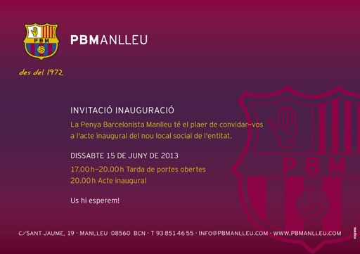 Invitació de inauguració del nou local de la Penya Barcelonista Manlleu
