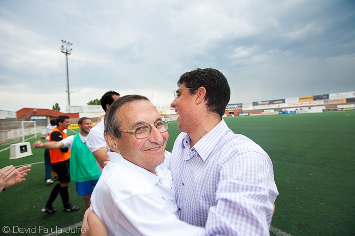 Pep Prat en una imatge de celebració amb l'extècnic Francesc Cargol. Foto: D. Fajula