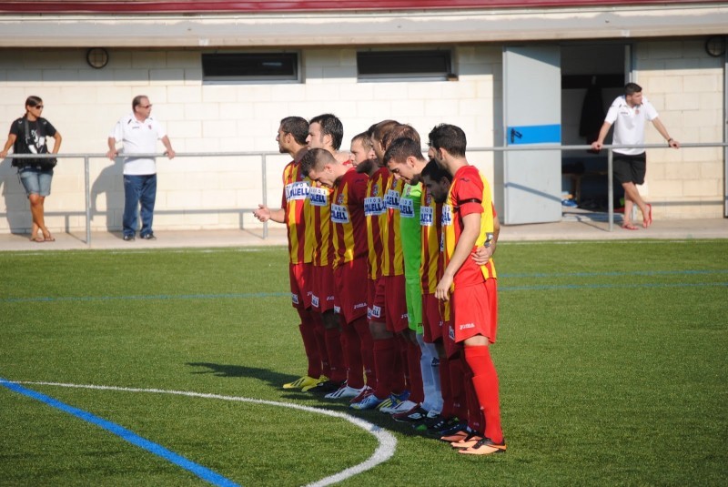 Una imatge del partit, amb el minut des silenci que es va fer en honor a Pep Prat. Foto: Viu el Manlleu
