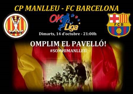 El Club Patí Manlleu masculí rep aquest dimarts (21:00h) ni més ni menys que el totpoderós FC Barcelona al Pavelló Municipal, en el partit corresponent a la 5a jornada de l'OK Lliga. El club ha fet una crida a l'afició i a la població manlleuenca perquè ompli les grades i es visqui un ambient sense precedents.
