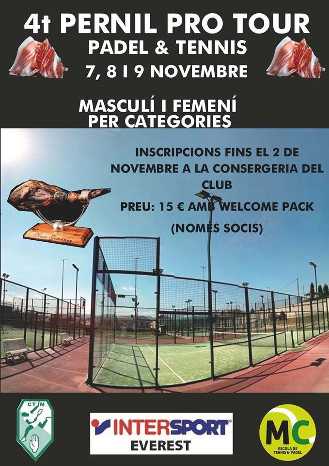 En total unes 90 persones prendran part en aquesta edició del Campionat Pernil Pro Tour. Un nombre de participants que ja supera la xifra de la passada edició de lesdeveniment, que es va citar en una setantena. El Campionat es dirigeix als socis del club i l'organitza, un any més, l'MC Escola de Tennis i Pàdel encapçalat per Marc Casanova.