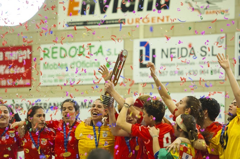 Jugadores del Benfica festejant el títol. Foto:Lluís Domènech