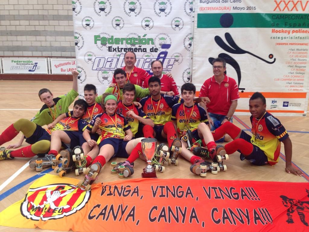 El Club Patí Manlleu Infantil ha guanyat el Campionat dEspanya dhoquei patins després dimposar-se aquest diumenge per 3 gols a 2 al Futbol Club Barcelona a la final. Els manlleuencs no han perdut cap enfrontament en els tres dies de competició, de divendres a diumenge, que shan disputat al municipi extremeny de Burguillos del Cerro.