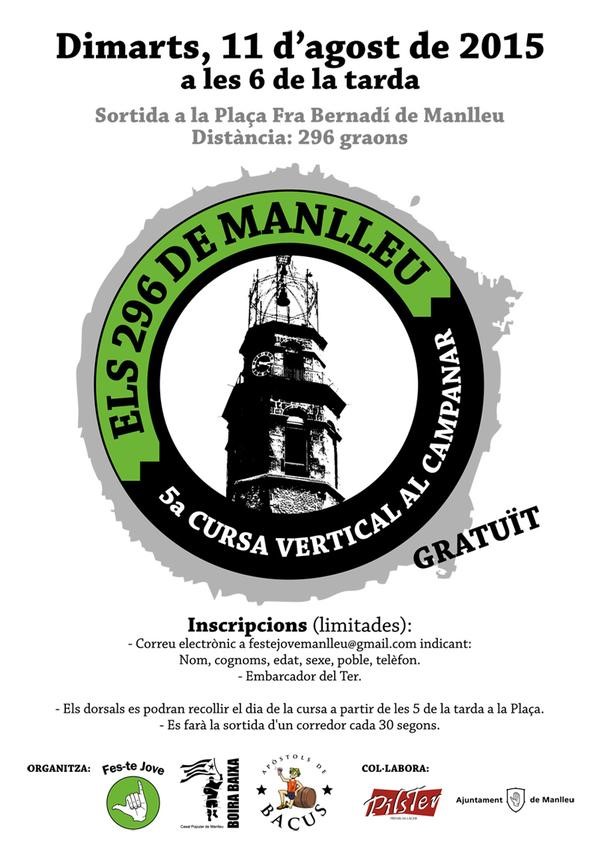 Es tracta d'una cursa popular que consisteix en pujar 296 esglaons, que van del pàrquing de la plaça a dalt del campanar de Manlleu en el mínim temps possible.