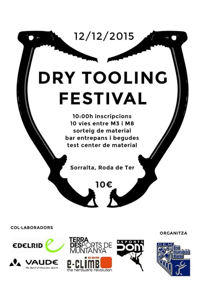 El ‘Dry Tooling’ és una modalitat d’escalada que ni molt menys és nova entre els amants d’aquesta disciplina. El ‘Dry Tooling’ és un tipus d’escalada que es fa amb eines d’alta muntanya, concretament amb piulet i amb grampons si s’escau. Amb el pas del temps el que va ser un tipus d’escalada a partir d’eines, s’ha convertit en una modalitat per si mateixa. El fet que ho demostra és que fins hi tot hi ha vies preparades per aquest tipus d’escalada sense neu ni gel. Com és el cas de la sessió de ‘Dry Tooling’ organitzada pel GEM, que es disputarà en una paret plana de roca calcària a Roda de Ter.