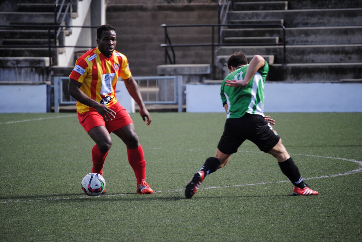 Al final del primer temps arribaria el primer gol del partit. Maik, que tornava a l’onze, assistia a Èric que passant per sobre de la defensa, de cap marcava el gol del Manlleu.