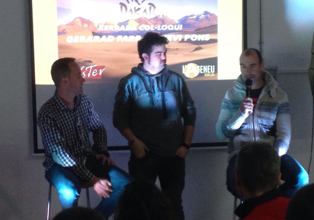 Al voltant d’unes setanta persones van assistir a la xerrada col·loqui del pilots manlleuencs del Dakar, que patrocinaven el Mercat Municipal de Manlleu i la cervesa manlleuenca Pilster. El regidor d’esports Enric Vilaregut va obrir l’acte donant les gràcies als dos pilots per posar Manlleu al mapa. Seguidament els dos pilots es van anar alternant les experiències, Xevi Pons va explicar les sensacions viscudes en el seu primer Dakar, afirmant que havia estat molt dur. Pons també va explicar algunes de les imatges que anaven passant per darrere dels pilots, com quan a la segona etapa va quedar enganxat en un fangar.