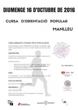 El Grup Excursionista Manlleu organitza aquest diumenge 16 d'octubre el Circuit d’Orientació Popular Manlleu. Es tracta d’una activitat adreçada a tothom i per a totes les edats.