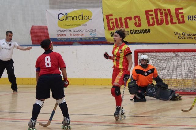 El Manlleu va marcar el domini als primers minuts amb un gol de Laura Barcons. Les italianes van disposar d’opcions per empatar quan Carolina Herrera va veure una targeta blava, però van errar la falta directa i van ser incapaces de superar una defensa visitant en minoria. Un cop el Manlleu va recuperar les quatre jugadores de pista, va tornar a dominar i Gemma Solé va fer el segon. Les ocasions van continuar arribant durant tota la primera part però sense poder superar la porteria local.