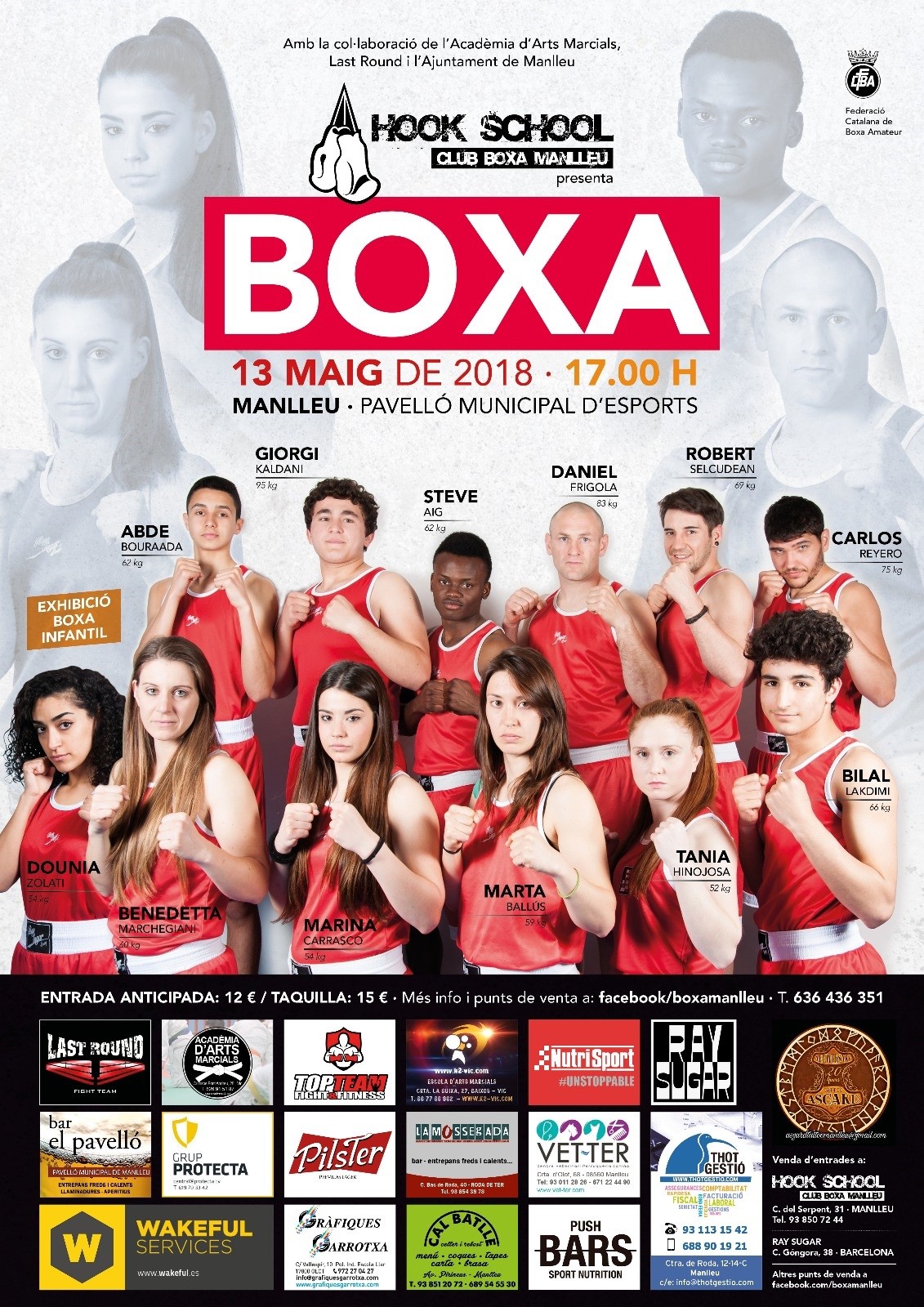 Les entrades anticipades estan ja a la venda i es poden adquirir al mateix Hook School, a l’Acadèmia d’Arts Marcials de Vic, Bar la Mossegada (Roda de Ter) i Ray Sugar (Bcn). El preu de l’entrada anticipada és de 12 euros i de 15 euros a taquilla.