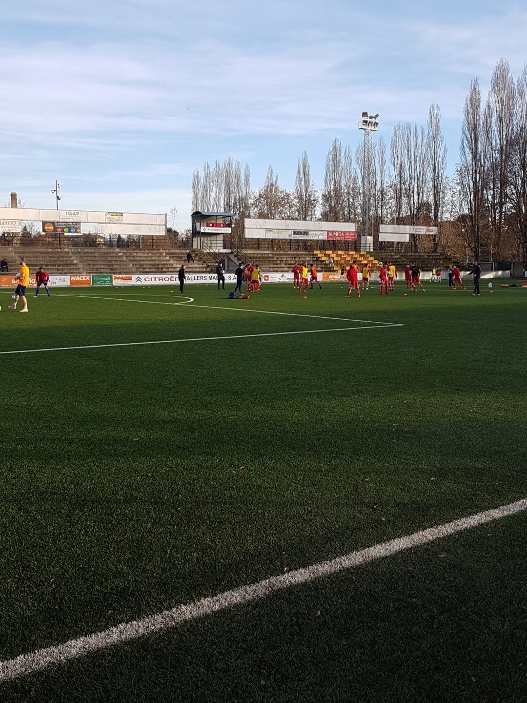 Tot i això els manlleuencs estaven ensenyant la seva millor versió i el minut 31 el màxim golejador, Raül Garcia, va aconseguir transformar una jugada a pilota parada i d’estratègia, en el primer gol pel conjunt local. Malgrat el domini del Manlleu en els següents minuts, un penal a favor de la Jonquera, que Pol Compte va marcar, va posar l’empat als últims instants de la primera part.