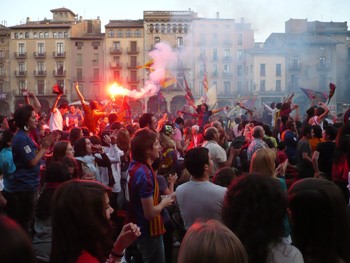 Milers daficionats osonencs es van aplegar dimecres en places, pavellons esportius, restaurants o casals culturals per veure ahir en pantalla gegant el partit entre el Barça i el Manchester United a la final de la Lliga de Campions.