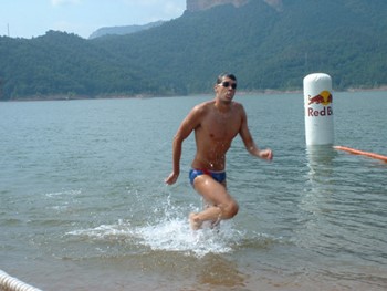 La travessa al pantà de Sau no es caracteritza per la seva duresa, sinó per la peculiaritat de lentorn. Casas es mostra satisfet per la qualitat de laigua del pantà i pel nivell, apunta que aquest any hi ha un 15% més daigua que en la passada edició.
