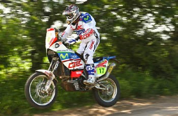 En lapartat de motos, Gerard Farrés ha començat amb bon peu. Farrés és vuitè a la classificació general a 14 minuts del francès David Casteu. Losonenc estava content aquest diumenge després de la segona etapa, tot i que per culpa duna caiguda va haver dacabar letapa sense navegació.