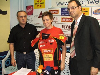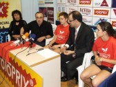 Un moment de la presentació de la jugadora amb la regidora d'Esports, Montserrat Rovira, i la jugadora Sara Ramírez