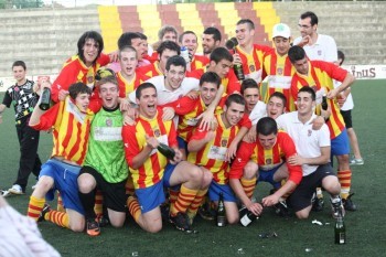 L'equip celebrant l'ascens a Divisió d'Honor, la temporada passada