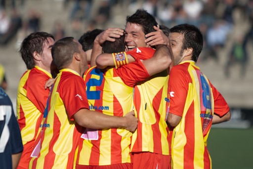 Una imatge d'arxiu de l'AEC Manlleu celebrant una victòria