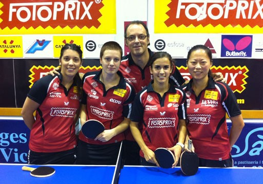 Una imatge de les jugadores del Fotoprix Vic i l'entrenador Miquel Duran
