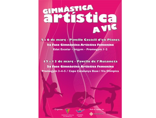 Els propers caps de setmana 5 i 6 i 12 i 13 de març el Club Gimnàstic Osona organitza a Vic la segona Fase dels Campionats de Catalunya de Gimnàstica Artística Femenina on participaran gimnastes darreu de Catalunya. El dies 5 i 6 es farà la competició en les categories de Escolars , Inigym i Promogym 1 i 2 al Pavelló Castell den Planes.