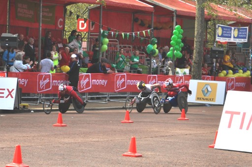 Després duna discreta vuitena posició a la Marató de París, el passat dia 10, Roger Puigbò va aconseguir la quarta plaça a la Flora London Martahon del diumenge dia 17. Els canvis en la posició de la cadira i en el guants li van permetre recuperar el seu nivell dabans, lluitant des del primer moment per les primeres places.