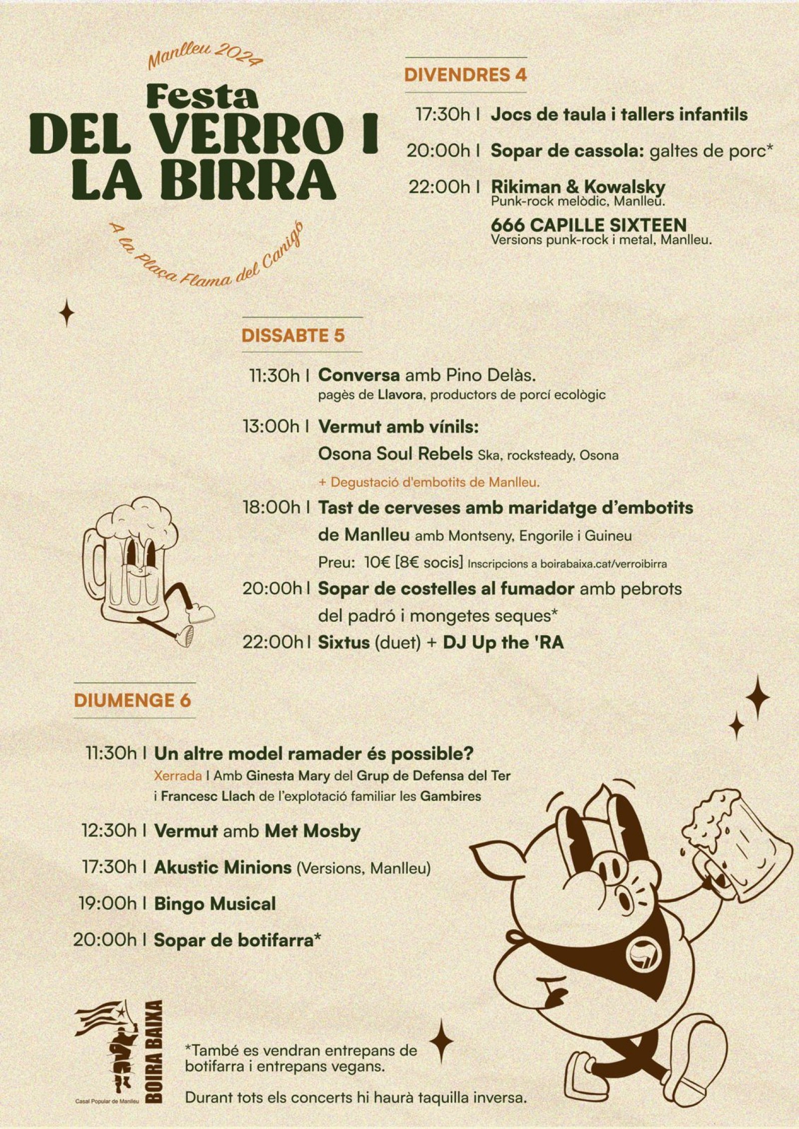 Un any més, el Casal Popular Boira Baixa presenta la seva programació per la Festa del Verro i la Birra, que iniciarà