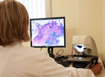 Gràcies a una aportació dOsona contra el Càncer, el servei dAnatomia Patològica del Consorci Hospitalari de Vic ha incorporat un nou microscopi digital dalta definició que permet visualitzar imatges dalta qualitat en una pantalla sense haver de mirar a través dels oculars.