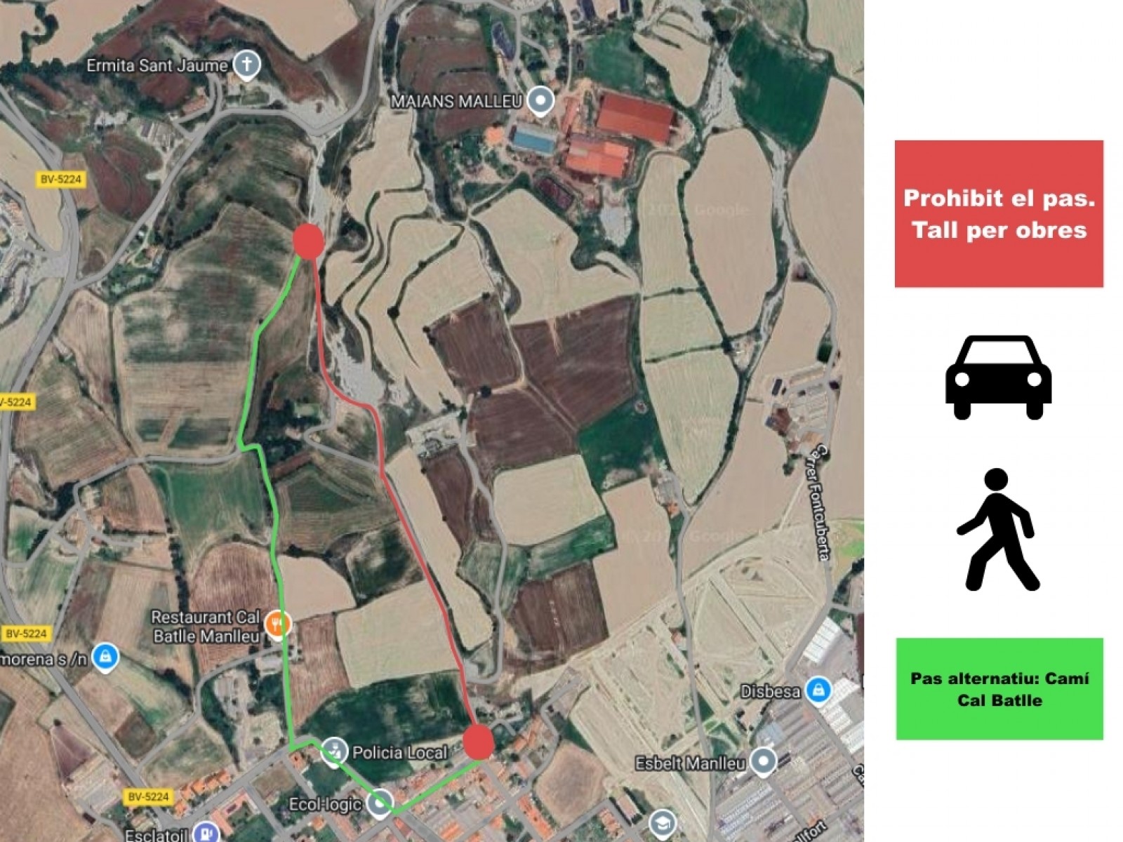 Les obres de la Ronda Nord encaren el tram final i per aquest motiu es procedirà a tallar el camí de La Coma que s'utilitza habitualment per pujar a l'Ermita de Sant Jaume. El camí quedarà tallat a la circulació de vehicles i al pas peatonal. El camí alternatiu mentre durin les obres és el que passa pel Restaurant Cal Batlle.