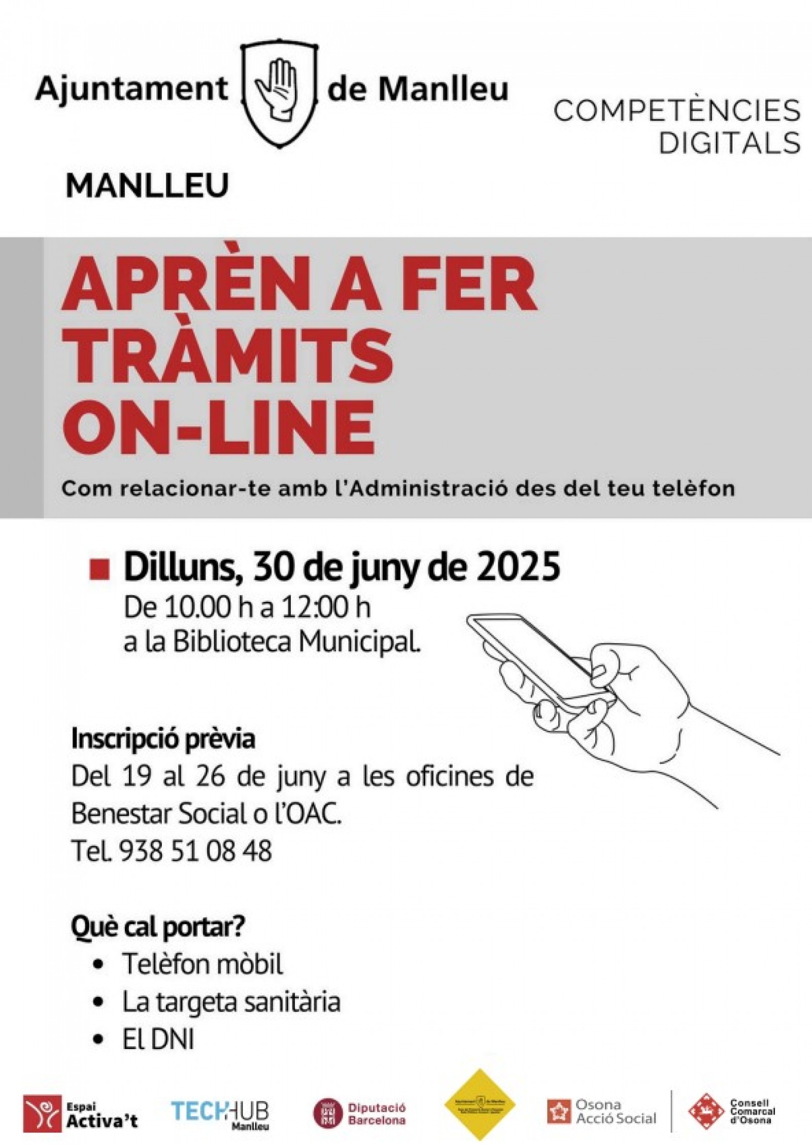 tindrà lloc el dilluns 30 de juny, de 10 a 12 h, a la Biblioteca Municipal de Manlleu BBVA. El curs està subvencionat per la Diputació de Barcelona i no té cap cost per a l'alumnat.