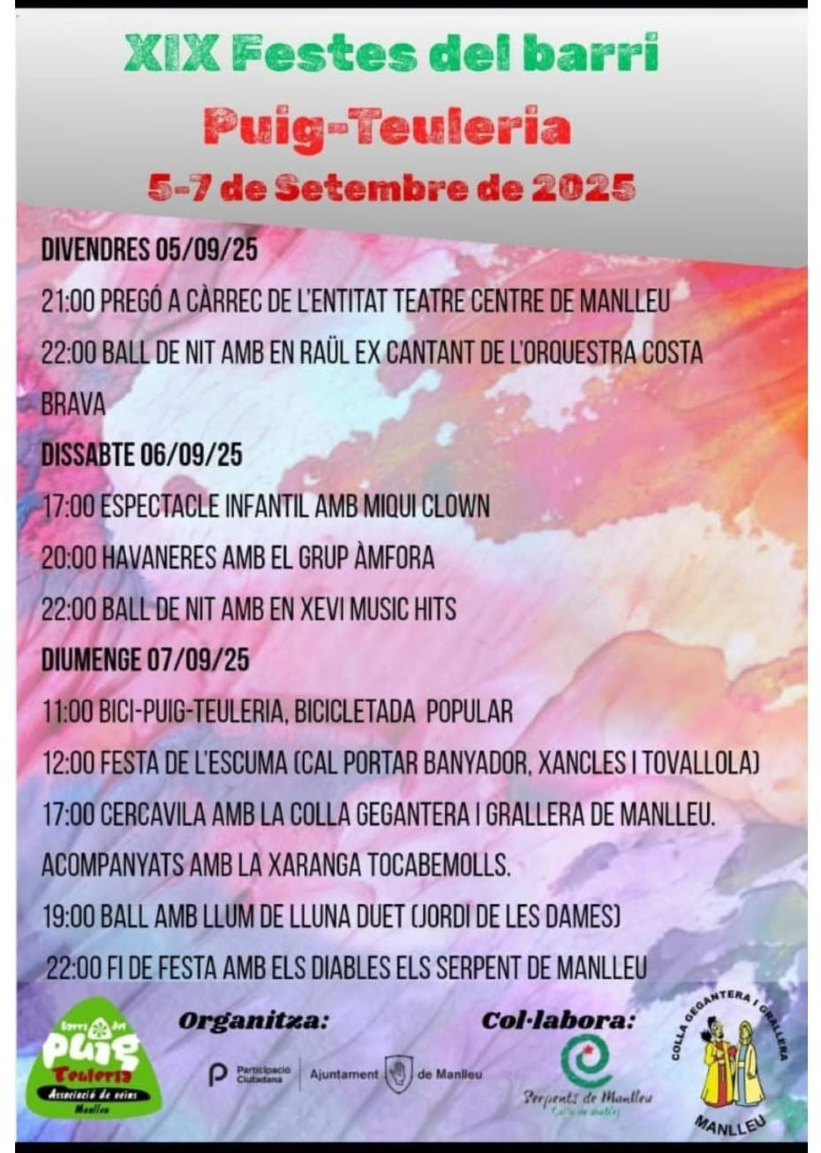 5, 6 i 7 de setembre el barri del Puig-Teuleria celebrarà les seves festes de barri. Totes les activitats tindran lloc al