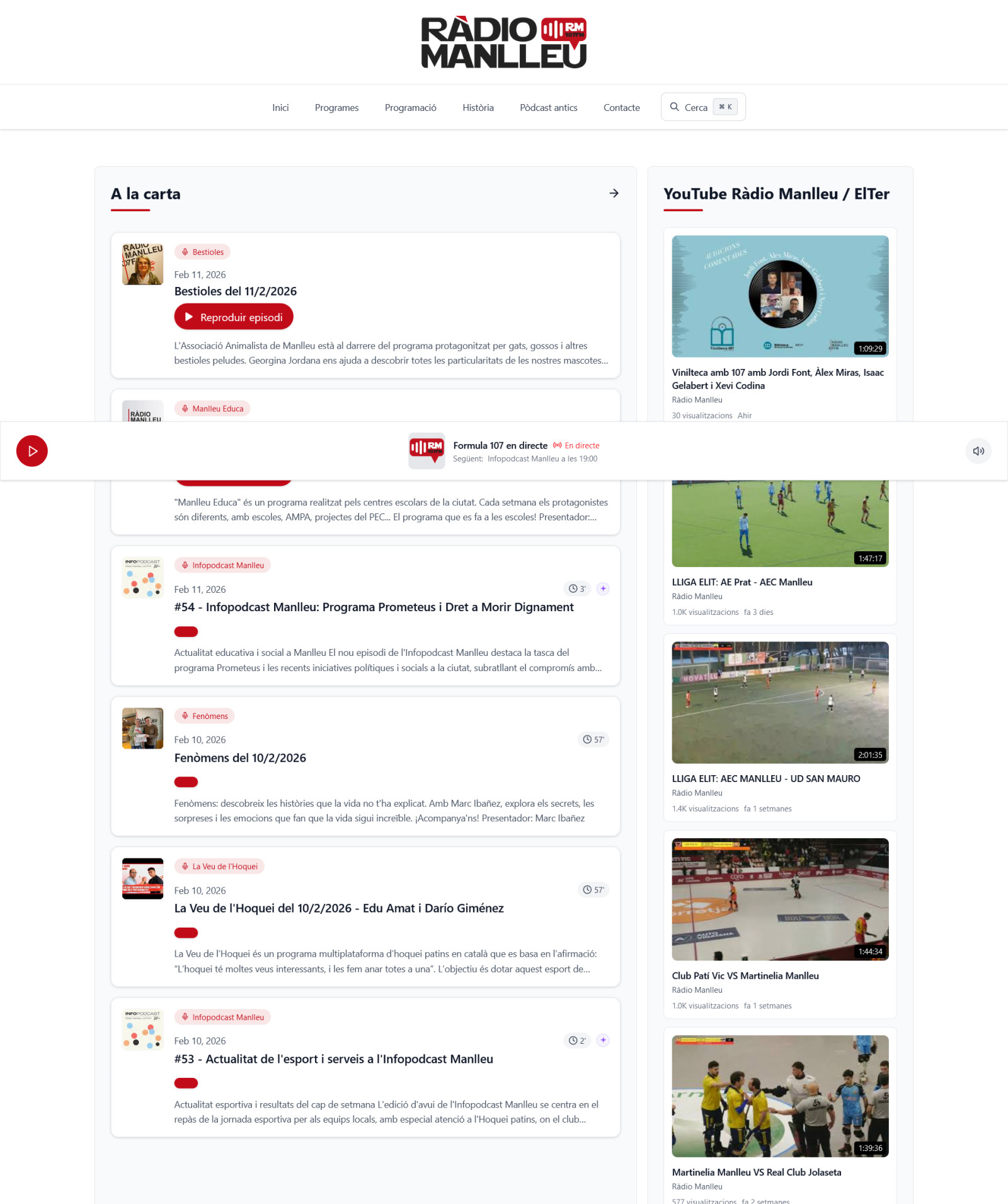 una nova pàgina web, desenvolupada per Enacast, empresa especialitzada en solucions digitals per a emissores de ràdio. El nou portal ofereix una navegació més intuïtiva, millor accessibilitat des de dispositius mòbils i una experiència optimitzada per escoltar la ràdio en directe i accedir als continguts a la carta.