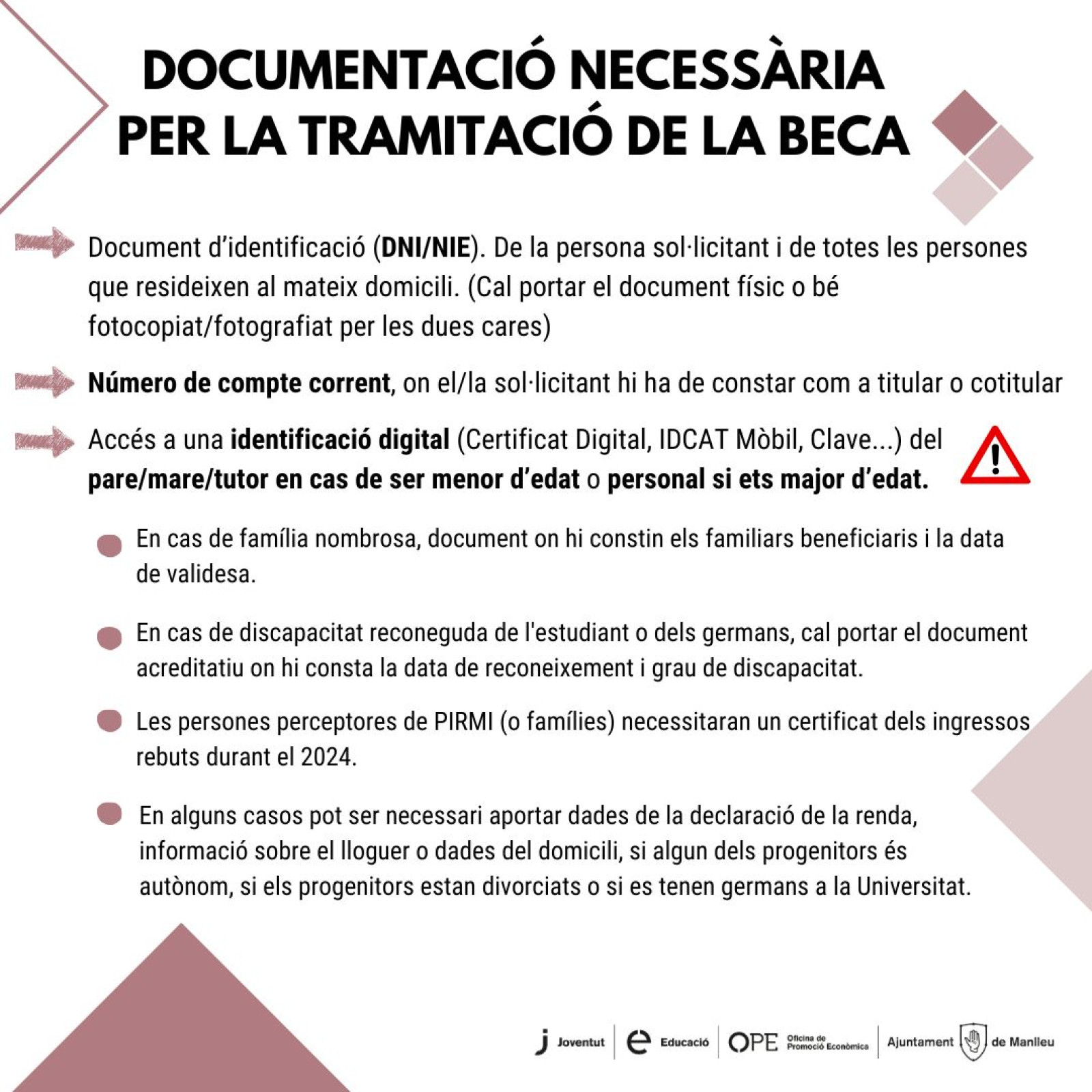 servei de suport a la sol·licitud de beques per a alumnes que han d'iniciar estudis postobligatoris el pròxim curs. Aquest es donarà a través del Servei d'Orientació Acadèmica i Professional (format per tècniques de Joventut, Promoció Econòmica i Educació).
