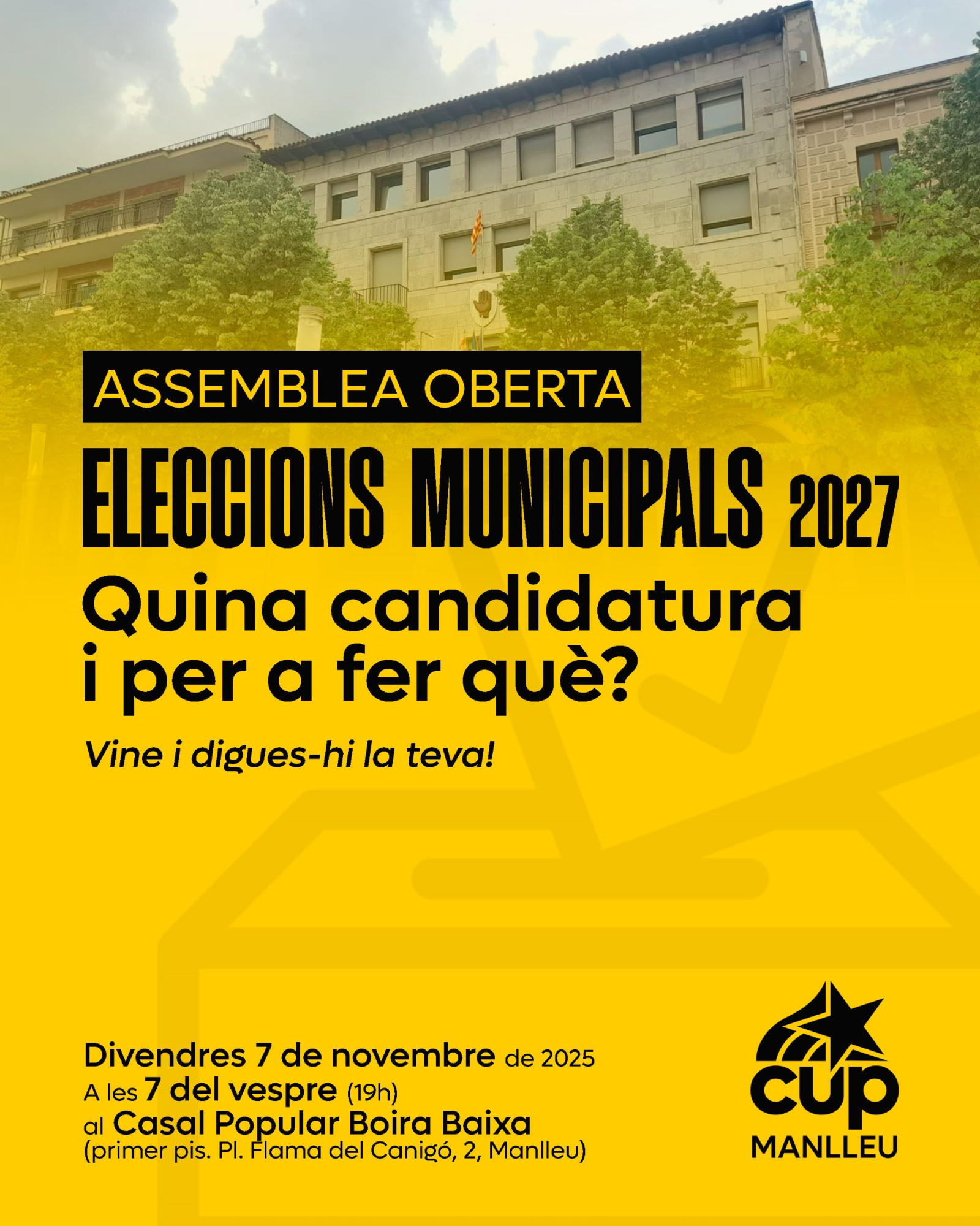 Superat l'equador de la legislatura, la CUP Manlleu convoca una assemblea oberta per començar a encarar els comicis locals, sota el títol
