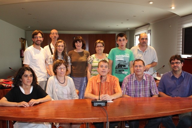 El jurat i el regidor d'Educació, en primer terme, amb alguns dels alumnes i tutors premiats