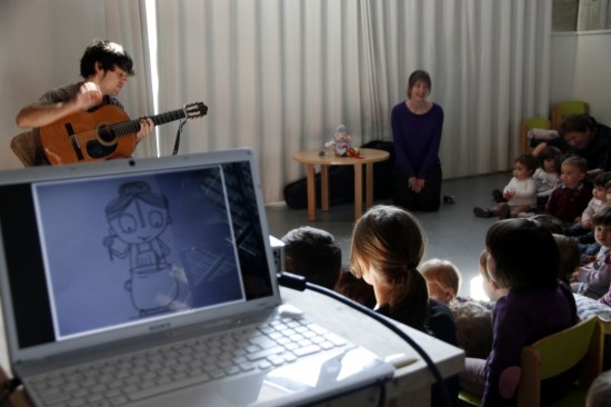 El cantant del grup musical La Iaia, Ernest Crusats, ha visitat aquest matí l'escola bressol Serra de Sanferm de Vic. La seva música s'ha convertit en la protagonista d'un projecte pedagògic ideat pels professionals d'aquest centre i que té com a principal objectiu transmetre el valor dels avis als infants. Crusats ha cantat les cançons 'Jo vull ser la meva iaia' i 'Ella cus' davant d'una setantena de nens d'entre 1 i 3 anys.