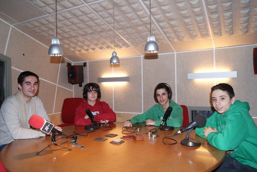 Imatge dels representants de l'equip de La Salle als estudis de Ràdio Manlleu
